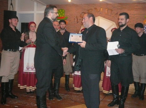 Ο Πρόεδρος της ‘Ενωσης, αφού καλωσόρισε τους παρευρισκόμενους, έκανε μια μικρή μνεία για τις δραστηριότητες της νεολαίας στα Σφακιά, και μετά ακολούθησε η απονομή τιμητικής πλακέτας στον Πρόεδρο του Μουσικοχορευτικού Συλλόγου «Τα Σφακιά» κ. Μ. Φασουλάκη και στον χοροδιδάσκαλο κ. Σ. Παπασηφάκη.